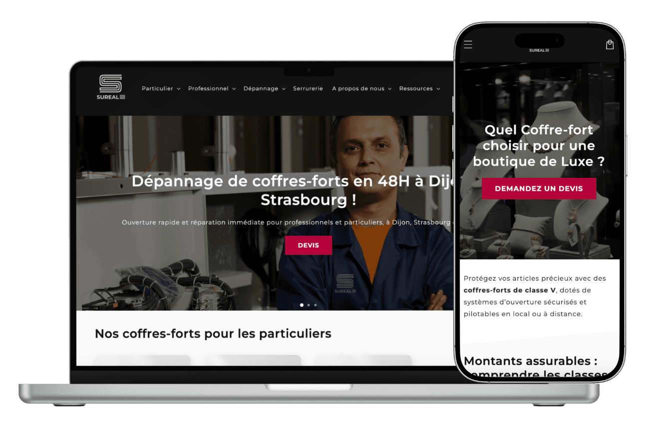 Création d’un site vitrine professionnel pour une entreprise de coffres-forts, afin d’établir une présence en ligne crédible et faciliter les demandes de contact.